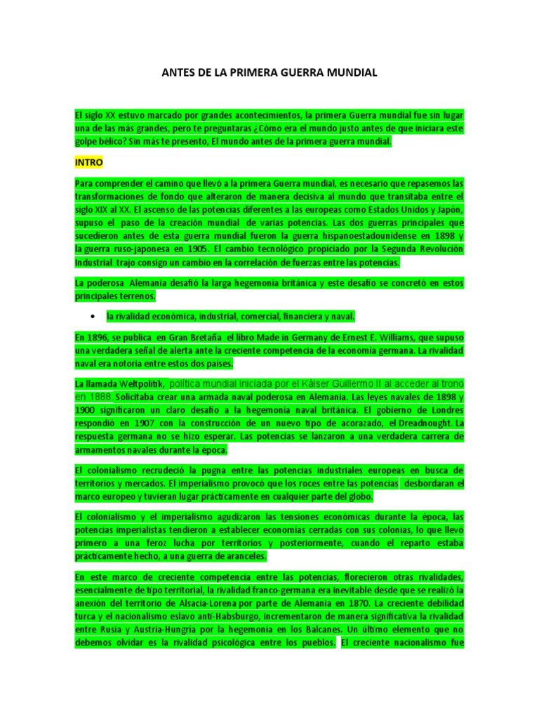 ANTES DE LA PRIMERA GUERRA MUNDIAL