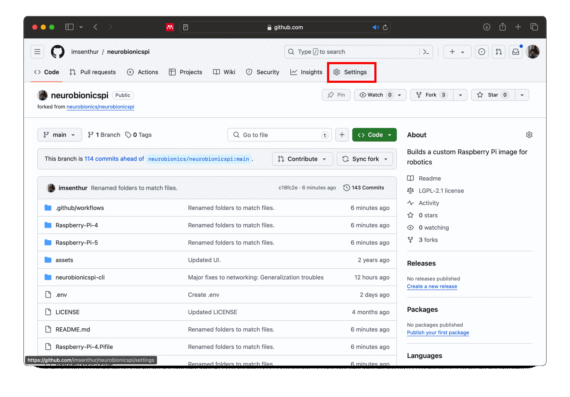 Forkbutton. This will create a private repository in your GitHub account with the same default source code, which you can then customize to suit your needs. - Next, you need to create a few secrets in your repository. These secrets will be used to configure your Raspberry Pi image. To do this, navigate to the
