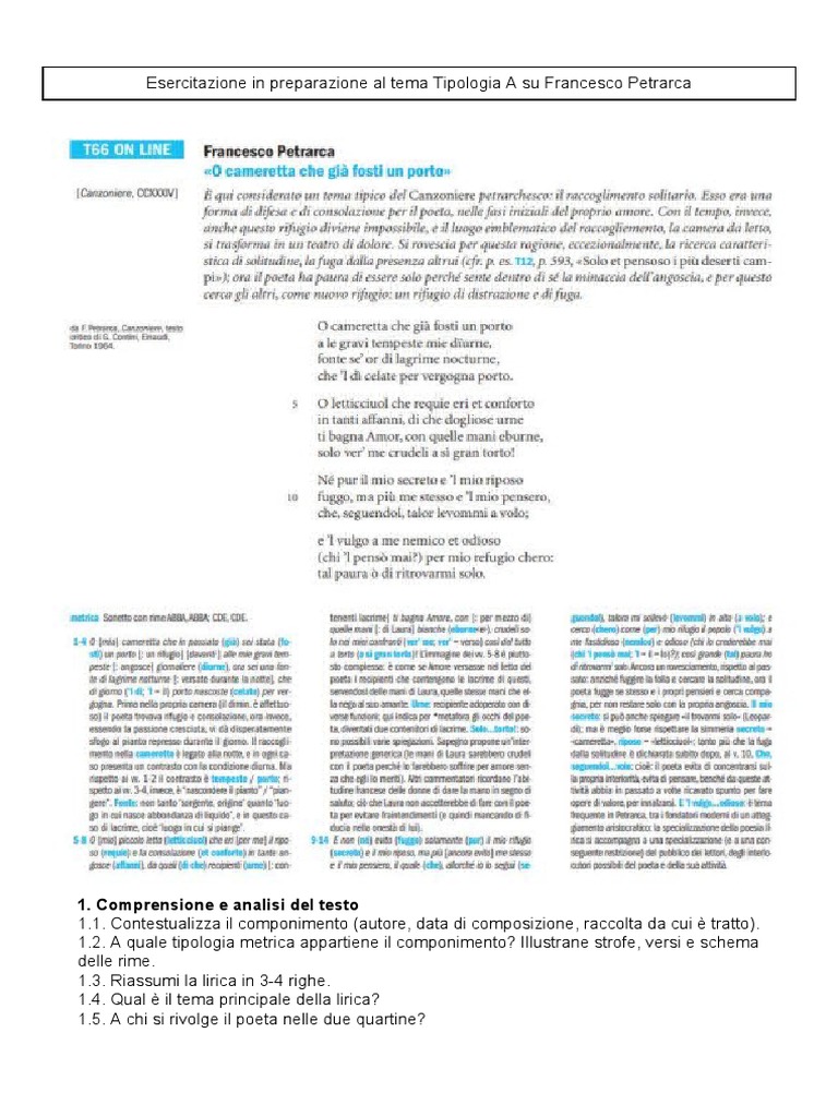 Esercitazione in preparazione al tema Tipologia A su Francesco Petrarca