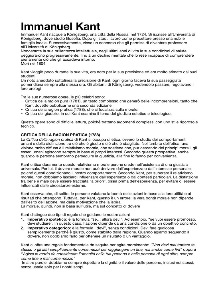 Questo testo tratta un famoso concetto espresso da Immanuel Kant nella sua Critica della ragion