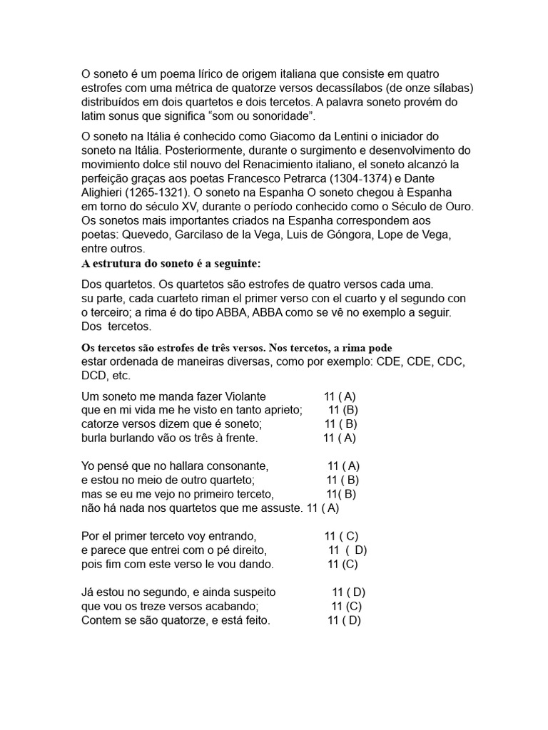 soneto na Itália. Posteriormente, durante o surgimento e desenvolvimento do