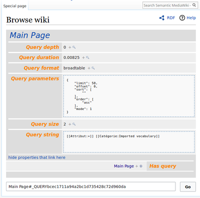 (except 1.22.1). in an effort to allow to track individual queries. The query data container is specified as a subobject stored with special property "Has query"Links a page to the subobject created by a query recording its profile that represents meta information about #ask, #show and #concept1 queries.